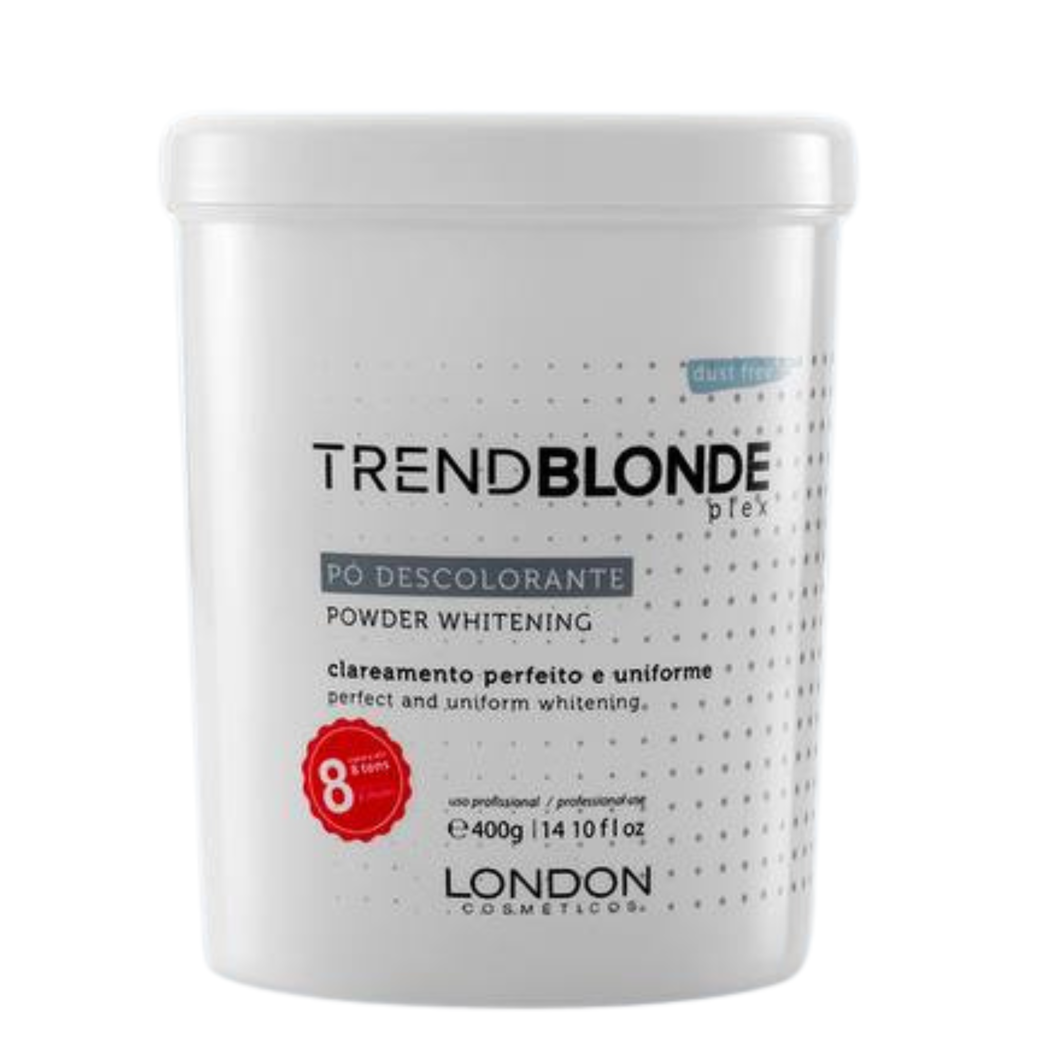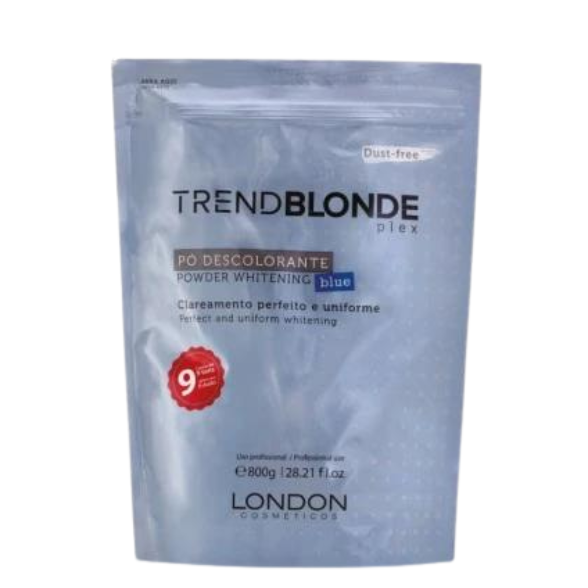 O Pó Descolorante Profissional TREND BLONDE PLEX BLUE proporciona um clareamento rápido e uniforme de até 9 tons.